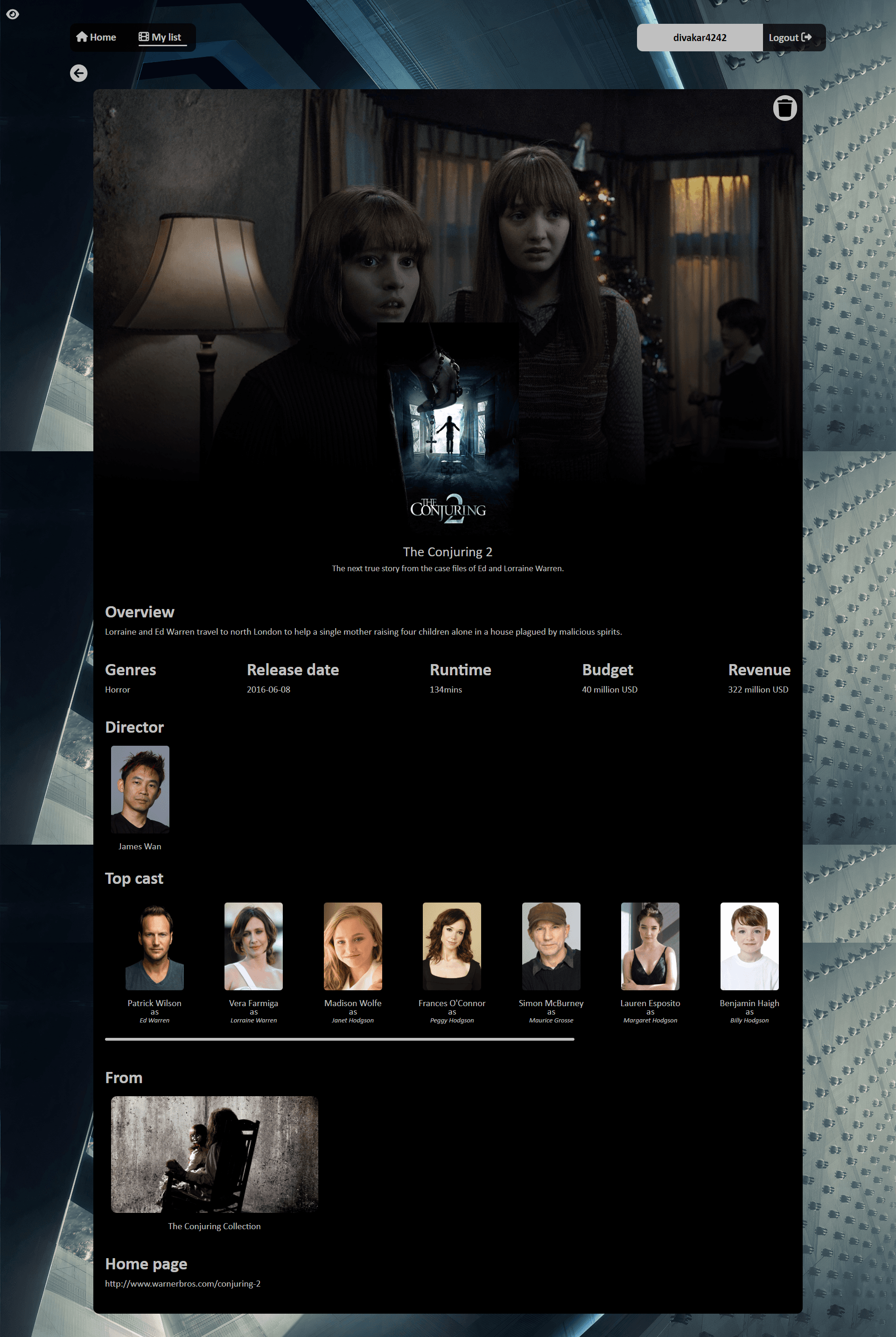 Detailed information about movies and add or drop them from your list