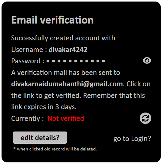 Verify email by clicking the link sent to the email.
